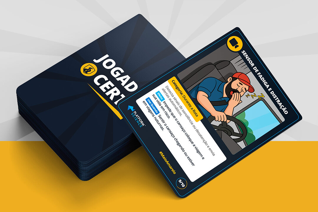 No jogo da estrada, cada decisão pode mudar tudo. Mas quem dirige com tecnologia, joga com estratégia. Neste Maio Amarelo, transformamos as nossas soluções em cartas que simbolizam proteção, inteligência e confiança.