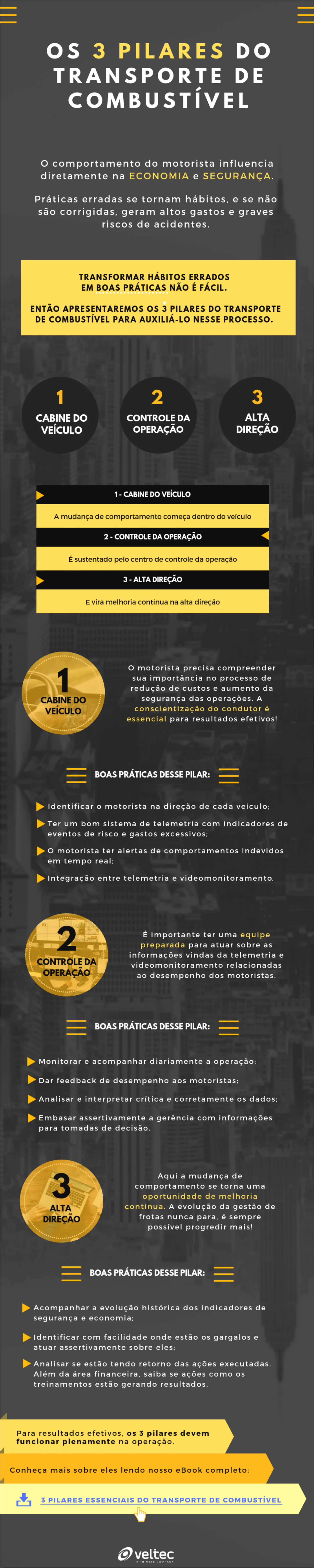 Preparamos um Infográfico com os 3 pilares do transporte de combustível. Saiba como transformar hábitos errados de direção dos seus condutores em boas práticas. Preencha o formulário ao lado e receba o Infográfico.